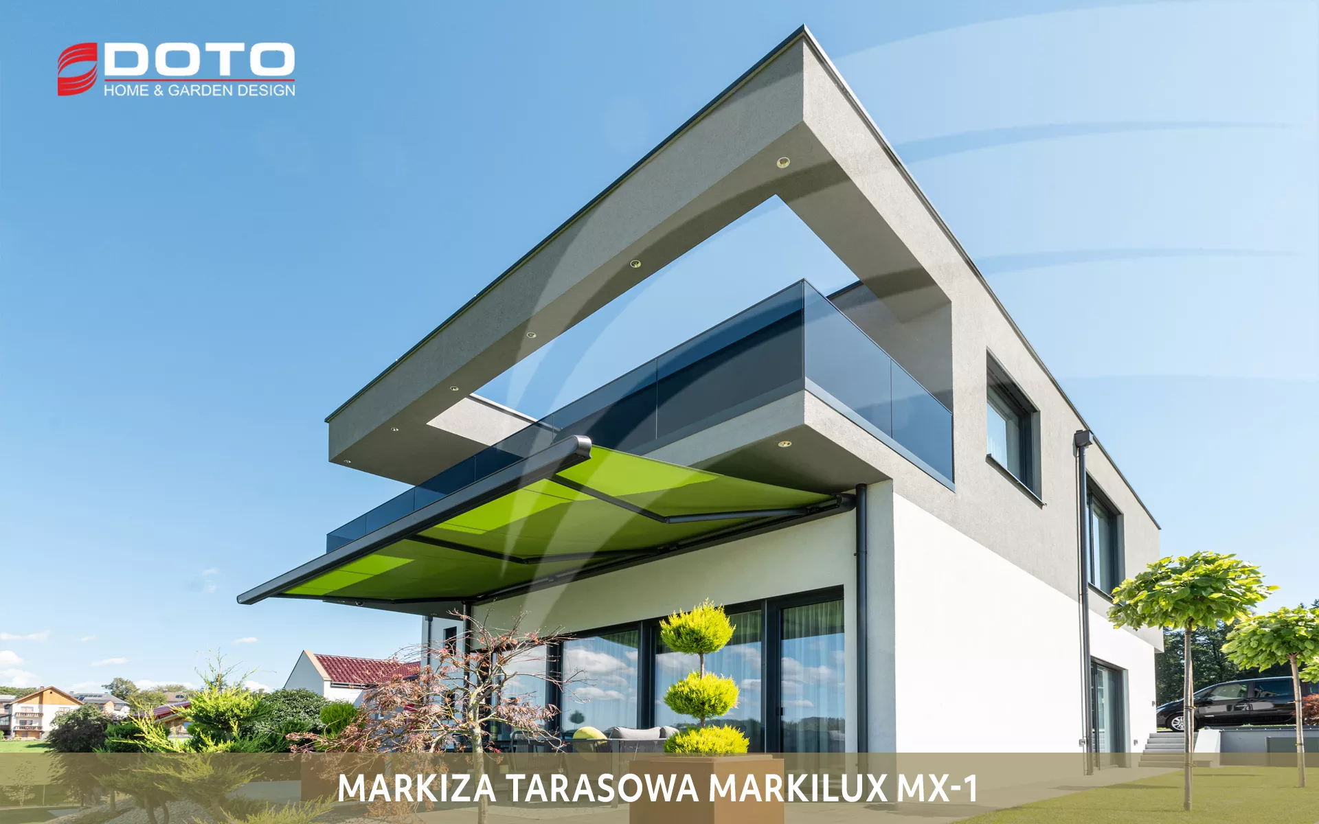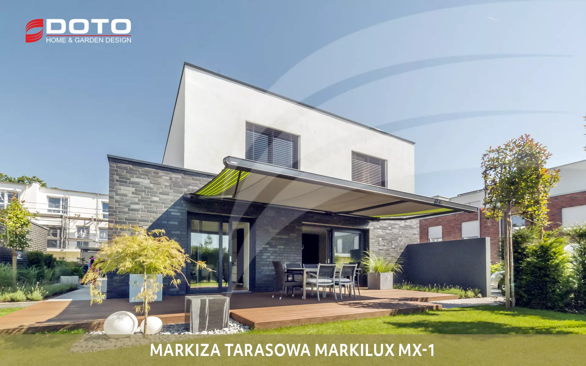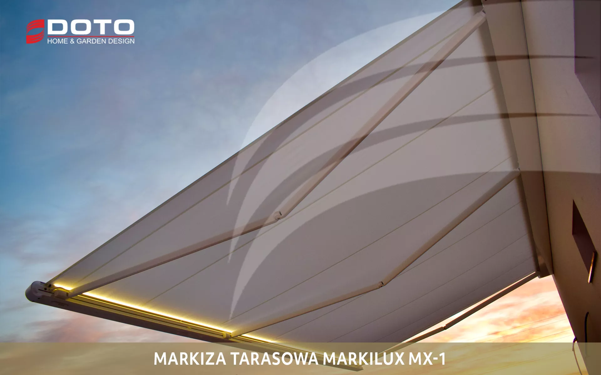 Markiza Markilux MX-1 to kwintesencja nowoczesnego wzornictwa i innowacyjnych rozwiązań technicznych. Jej charakterystyczna, futurystyczna forma oraz pełna kaseta sprawiają, że stanowi zarówno element użytkowy, jak i wyjątkową ozdobę nowoczesnej fasady.
