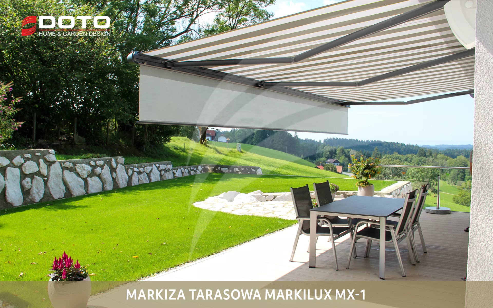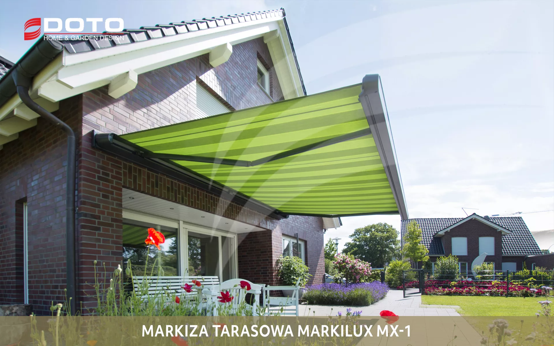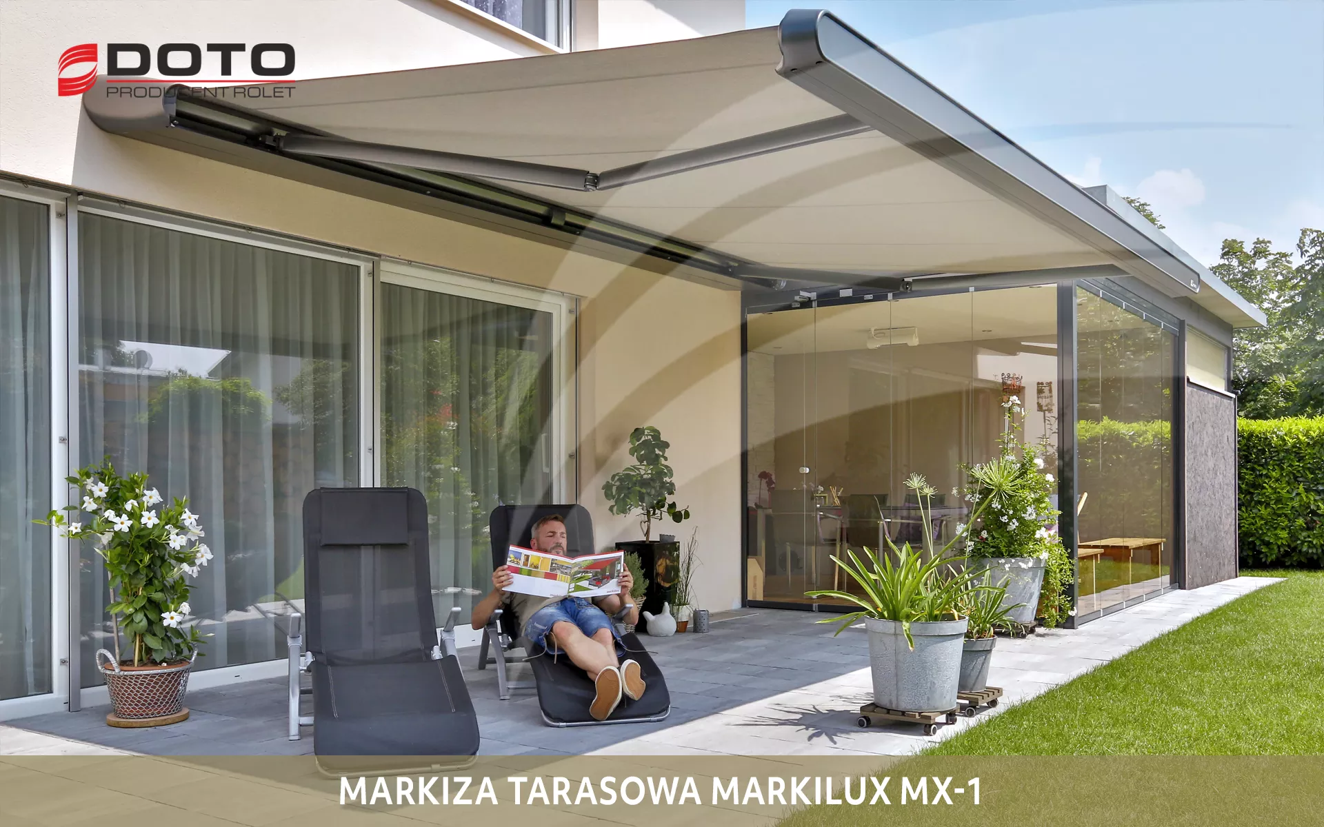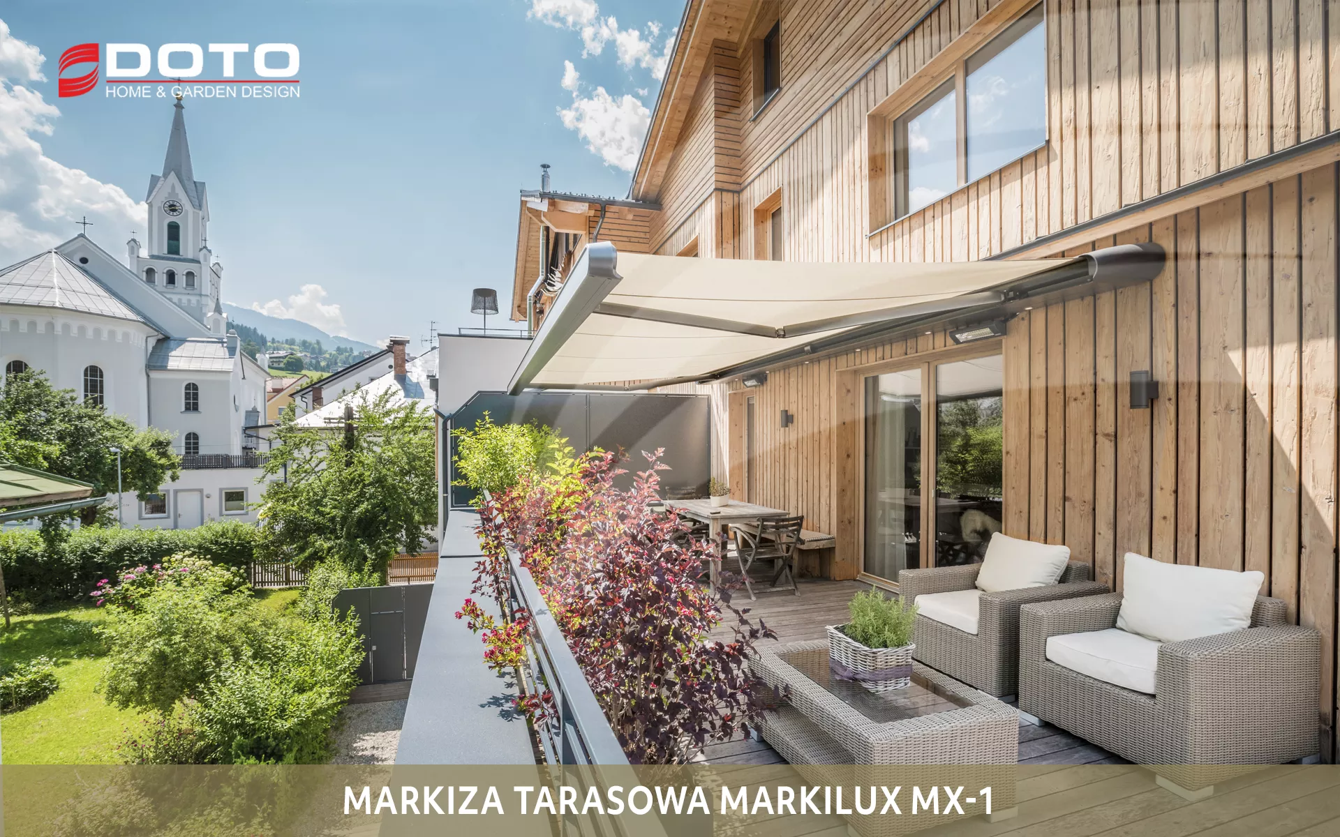 Markiza Markilux MX-1 to kwintesencja nowoczesnego wzornictwa i innowacyjnych rozwiązań technicznych. Jej charakterystyczna, futurystyczna forma oraz pełna kaseta sprawiają, że stanowi zarówno element użytkowy, jak i wyjątkową ozdobę nowoczesnej fasady.