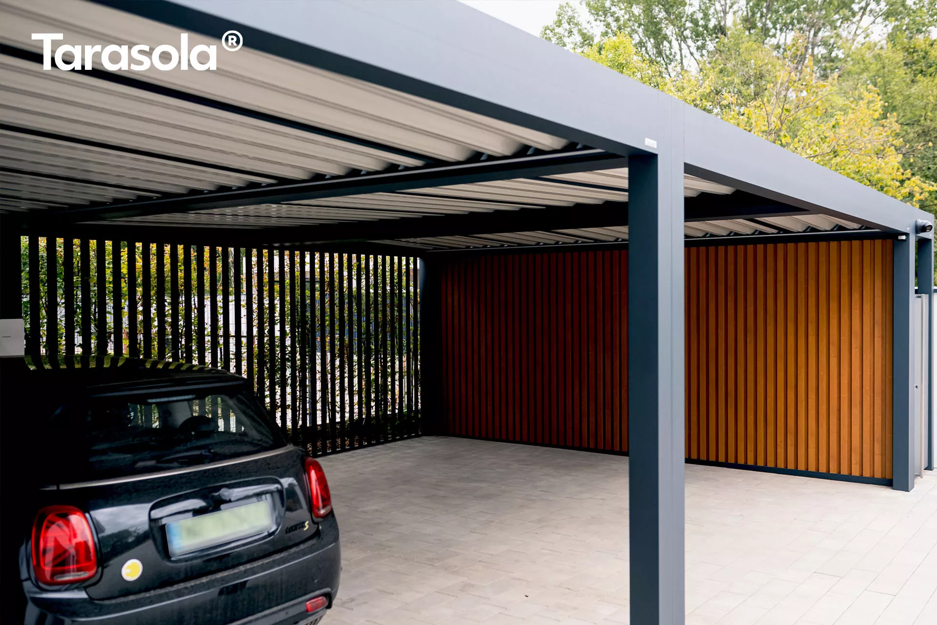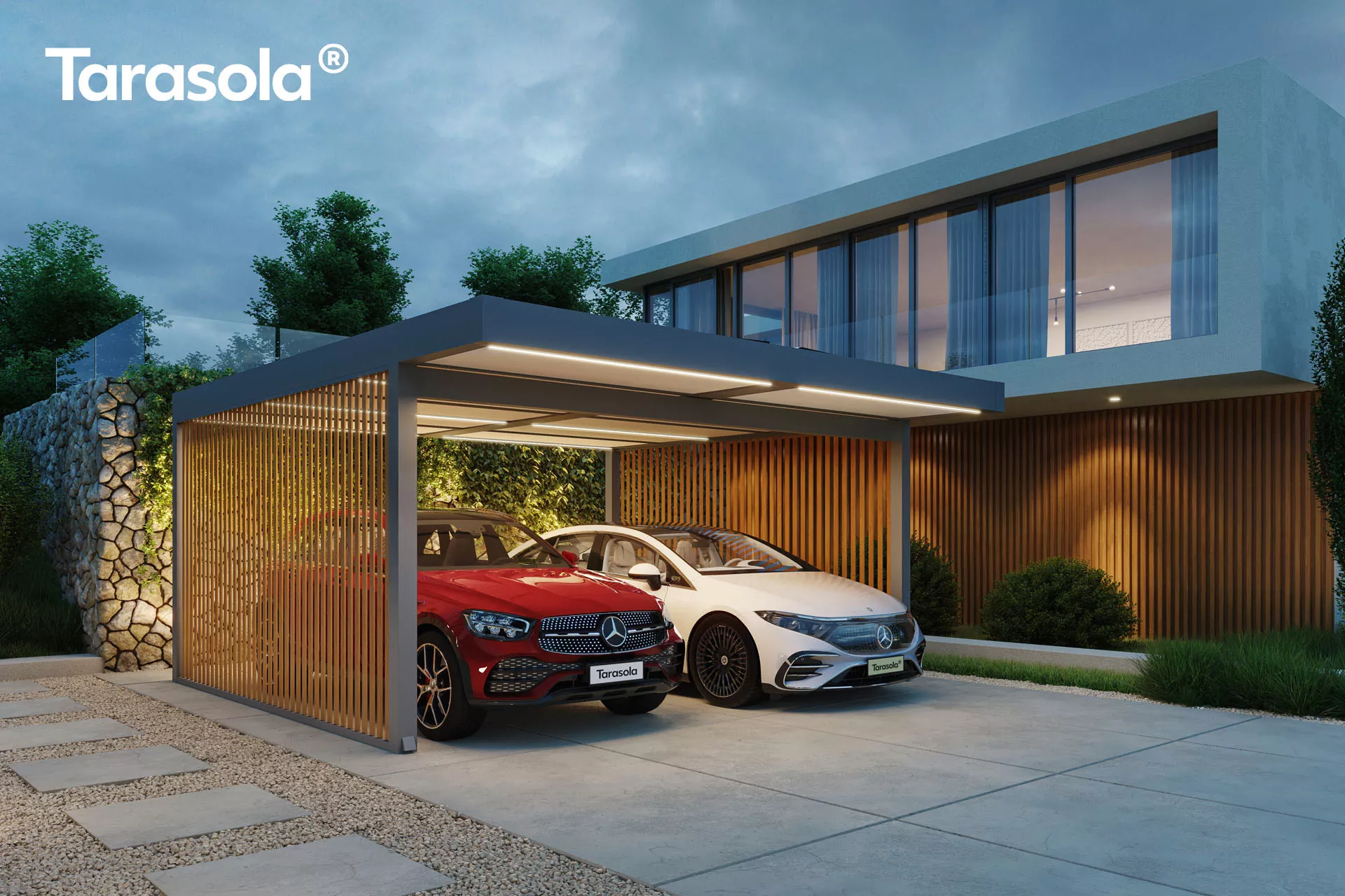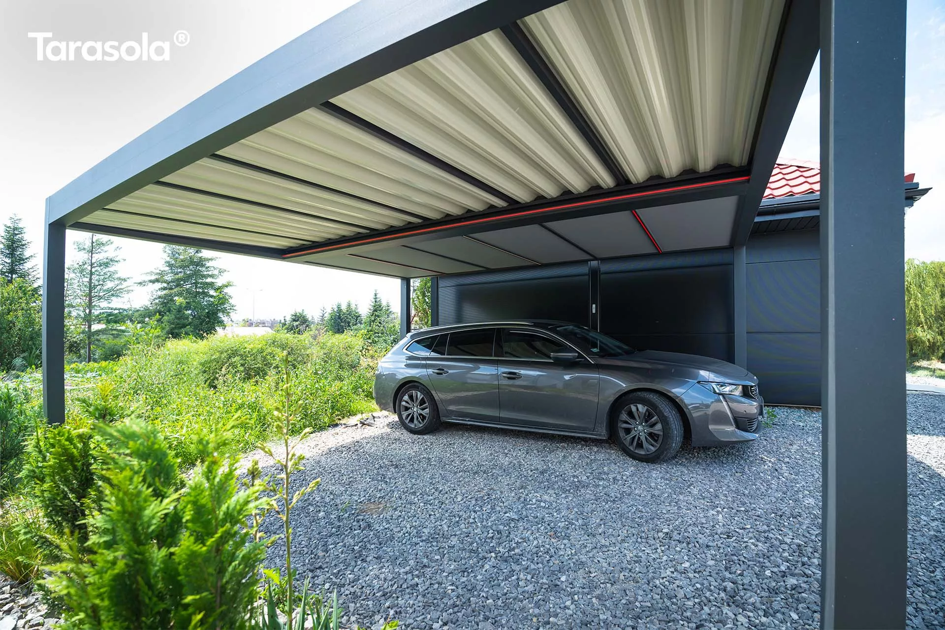 Tarasola Carport z panelami fotowoltaicznymi to nowoczesne, trwałe i funkcjonalne zadaszenie garażowe, które łączy ochronę samochodu przed warunkami atmosferycznymi z ekologiczną produkcją energii.
