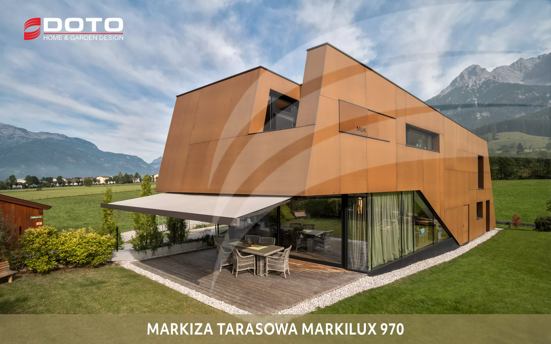 Markilux M970 to kwintesencja nowoczesnego stylu i komfortu, stworzona z myślą o wymagających użytkownikach, którzy cenią estetykę i funkcjonalność. Kompaktowa, prostokątna kaseta markizy doskonale komponuje się z nowoczesną architekturą domu, zapewniając harmonijny wygląd elewacji.