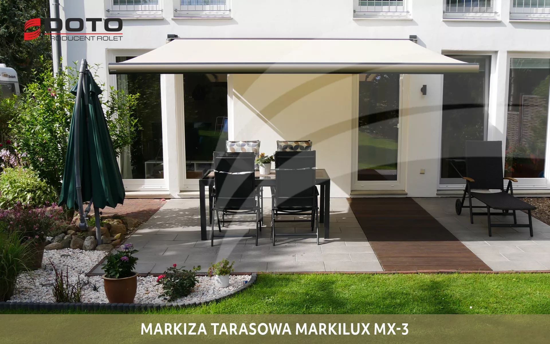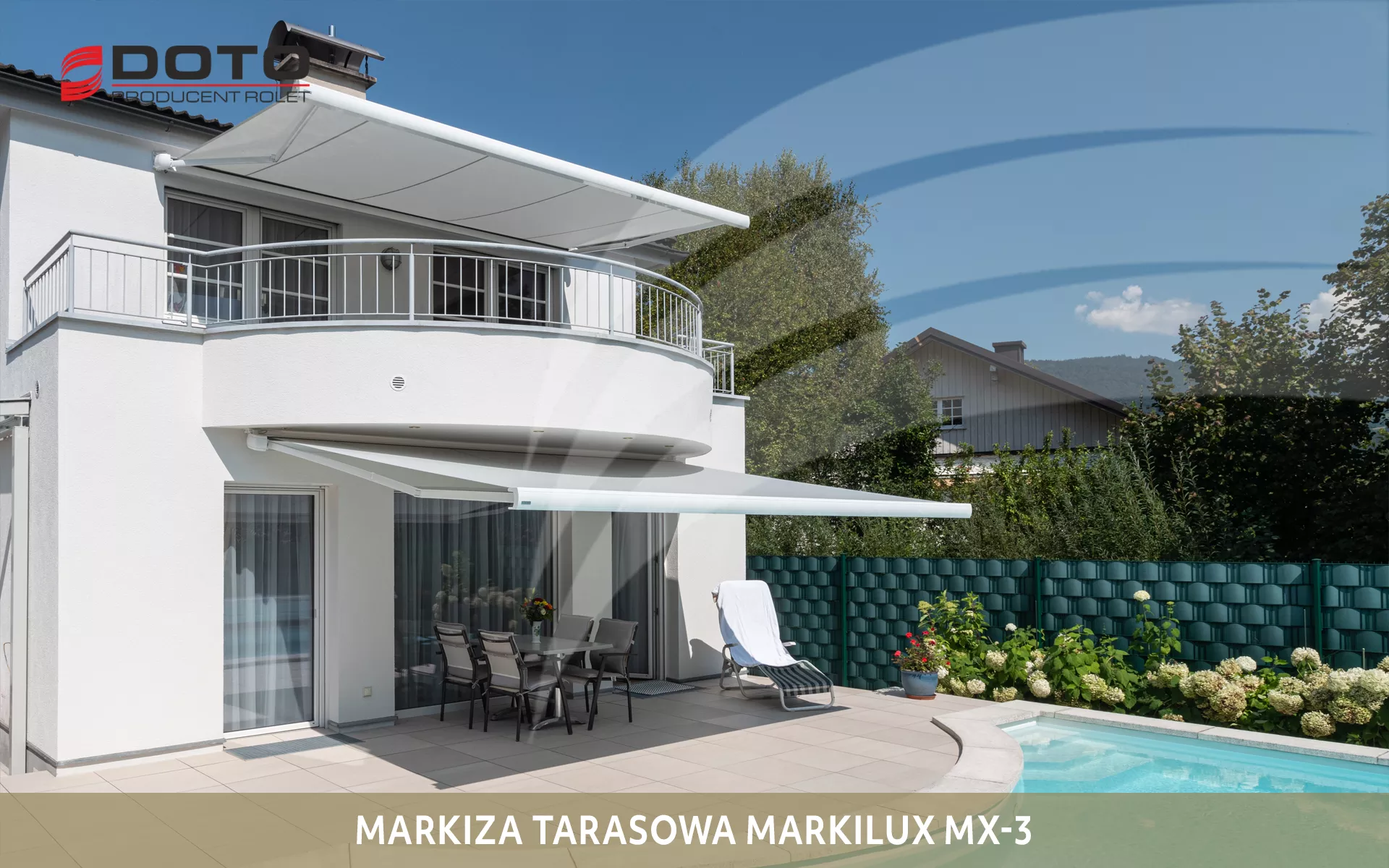 Markiza Markilux MX-3 to nowoczesne, designerskie rozwiązanie idealne do współczesnej architektury. Wyróżnia ją kompaktowa, pełna kaseta, która skutecznie chroni tkaninę i mechanizmy przed warunkami atmosferycznymi, zapewniając długotrwałą trwałość i estetykę produktu.