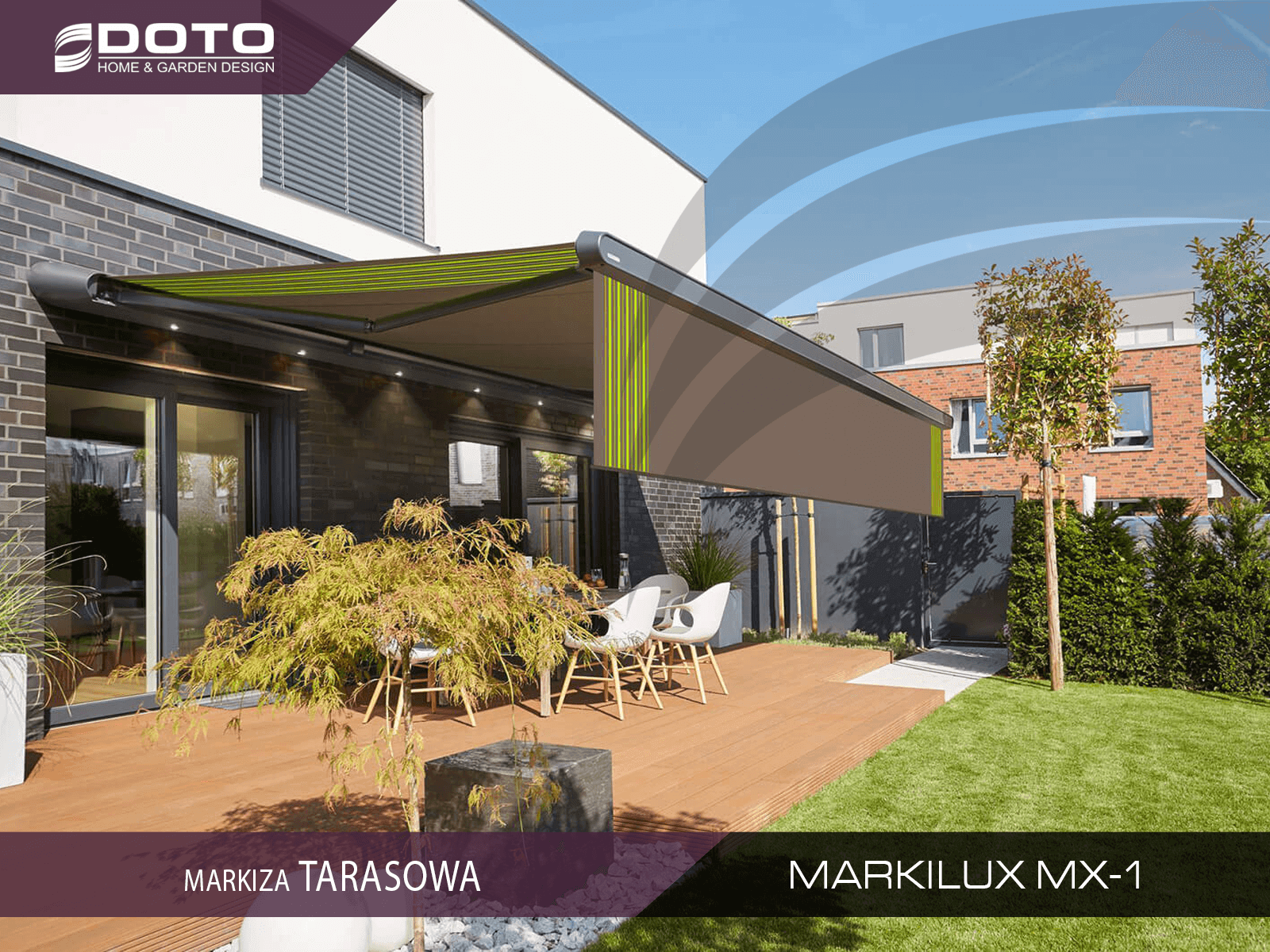 Markizy tarasowe z biało-czerwonymi pasami, które pamiętamy z dziecięcych lat, to już przeszłość. Nowoczesny design i mnogość konfiguracji pozwala teraz na dowolną aranżację, przy zachowaniu neutralności na tarasie. W zależności od naszych preferencji, markiza może być głównym, najbardziej wyróżniającym się elementem tarasu lub doskonale ukrytym, pokazującym swoje walory dopiero po rozłożeniu.