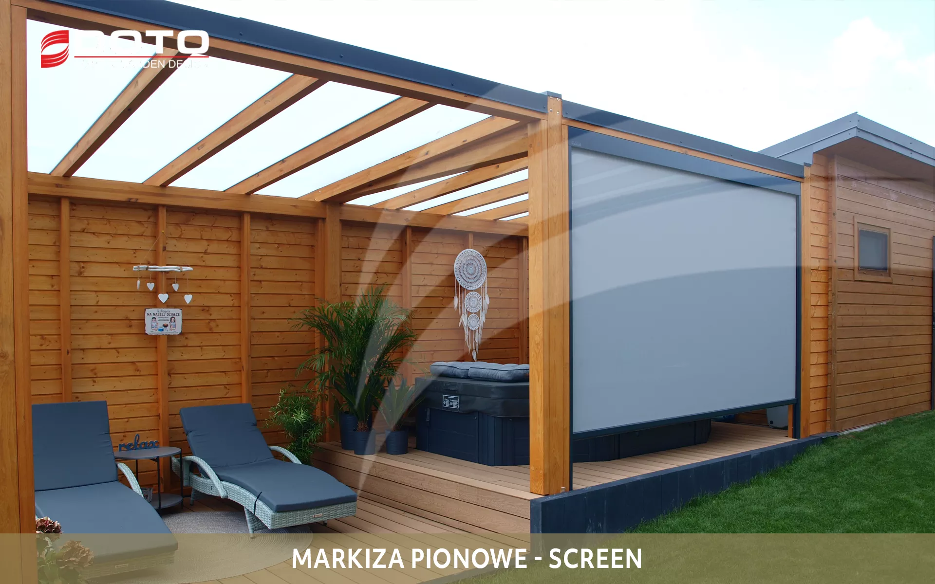 Markizy pionowe screen montowane pomiędzy słupami na podcieniach tarasów to funkcjonalne i estetyczne rozwiązanie, które pozwala tworzyć komfortową przestrzeń zewnętrzną chronioną przed promieniowaniem słonecznym, wiatrem i deszczem. Dzięki zastosowaniu tkanin screen o wysokiej trwałości i odporności na czynniki atmosferyczne, markizy te skutecznie ograniczają nagrzewanie podcieni, jednocześnie nie blokując widoku na zewnątrz.