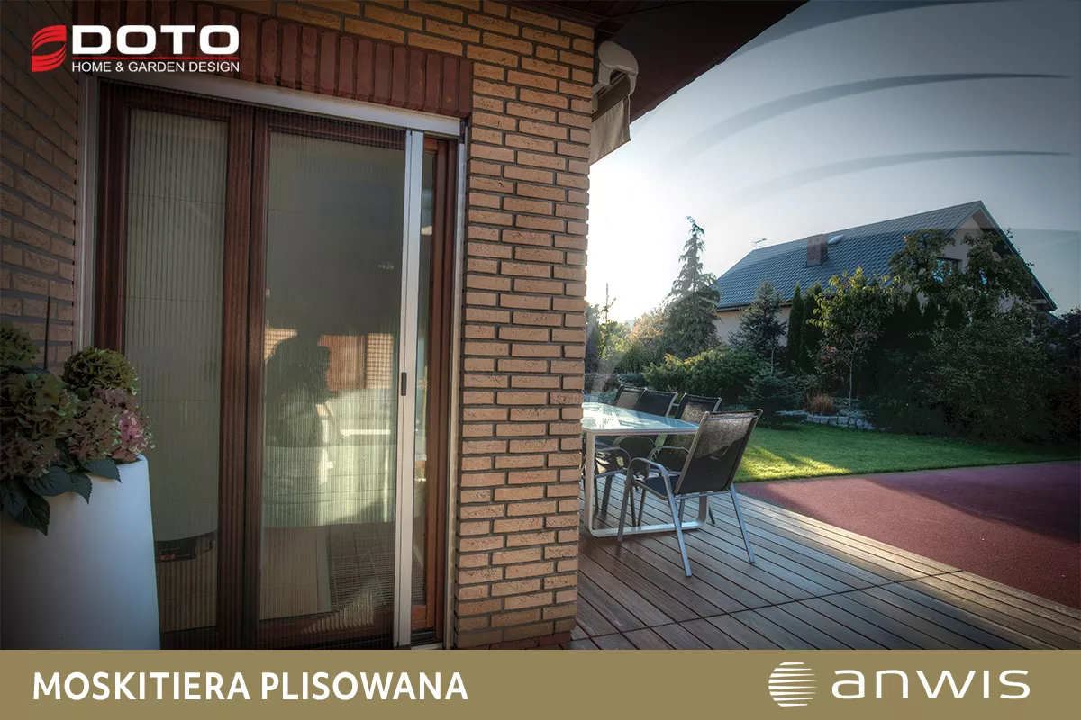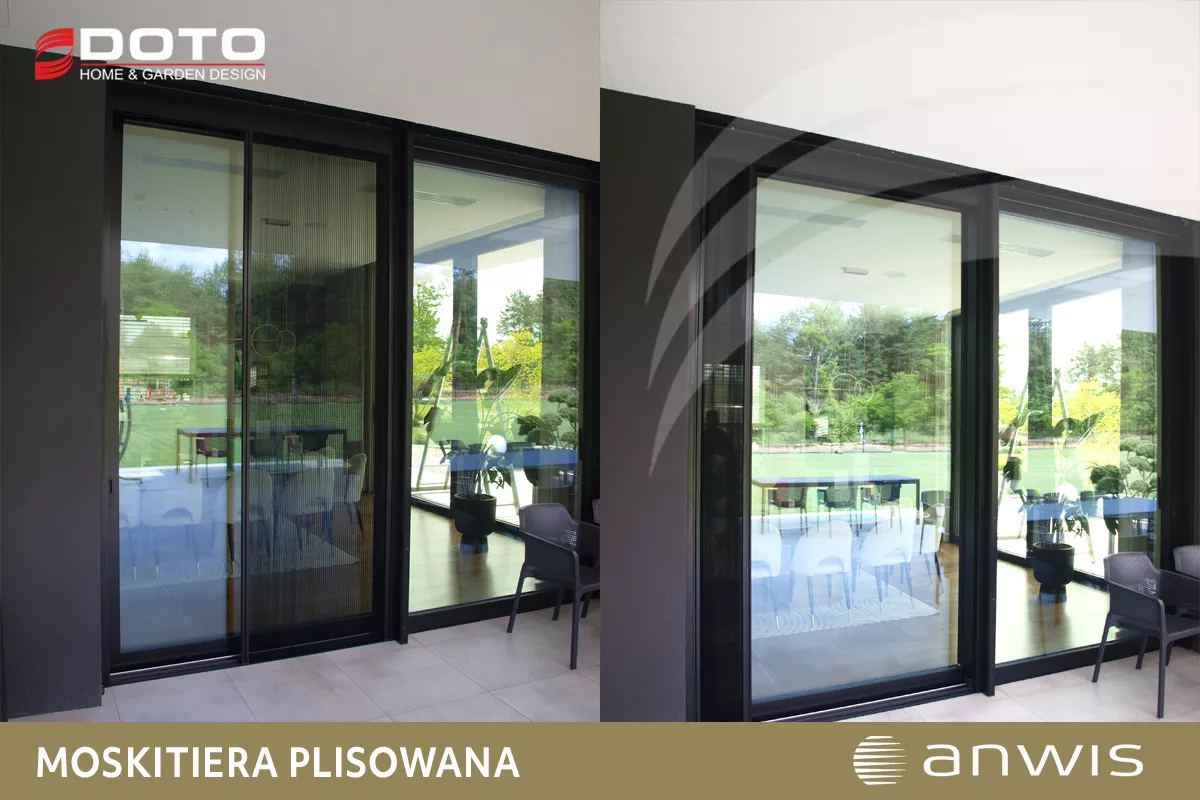 Moskitiera plisowana DOTO to nowoczesna i funkcjonalna osłona, która zapewnia skuteczną ochronę przed owadami, jednocześnie nie ograniczając swobodnego przepływu powietrza i dostępu do tarasu czy balkonu. W ofercie DOTO dostępne są moskitiery plisowane renomowanej marki Anwis, cenionej za wysoką jakość i trwałość rozwiązań osłonowych.