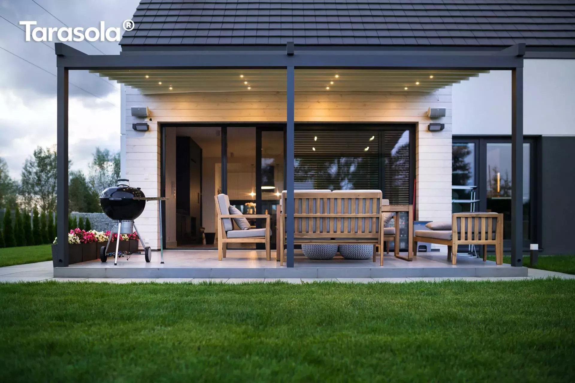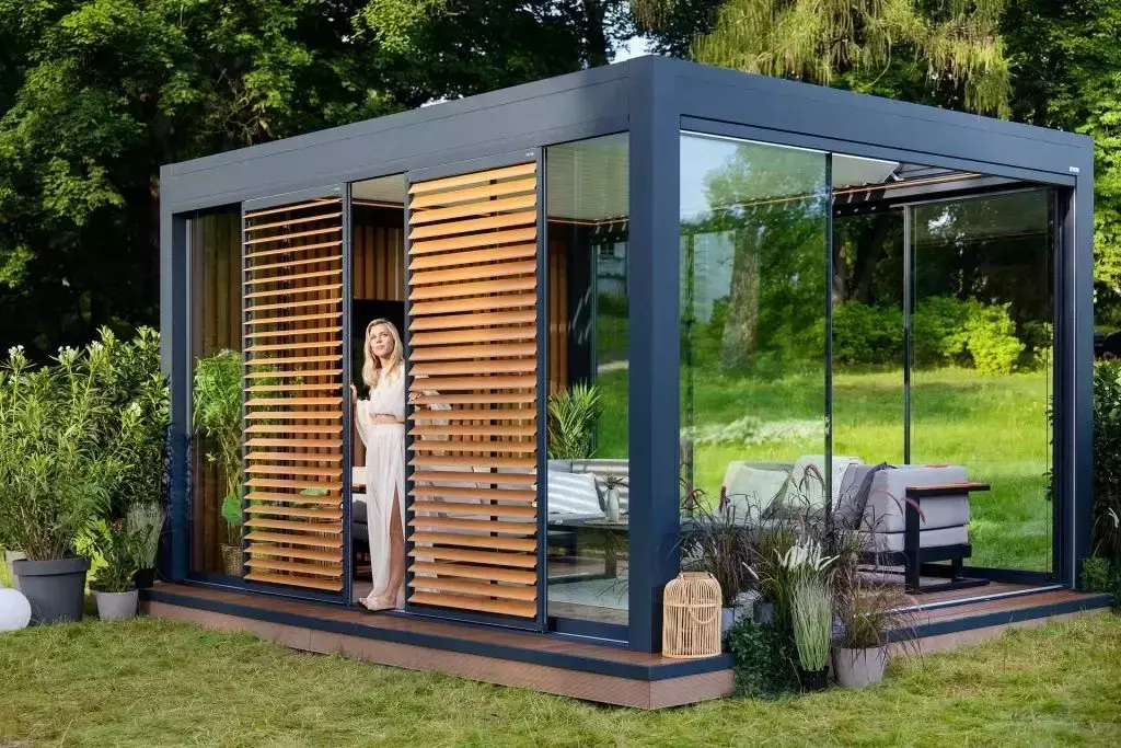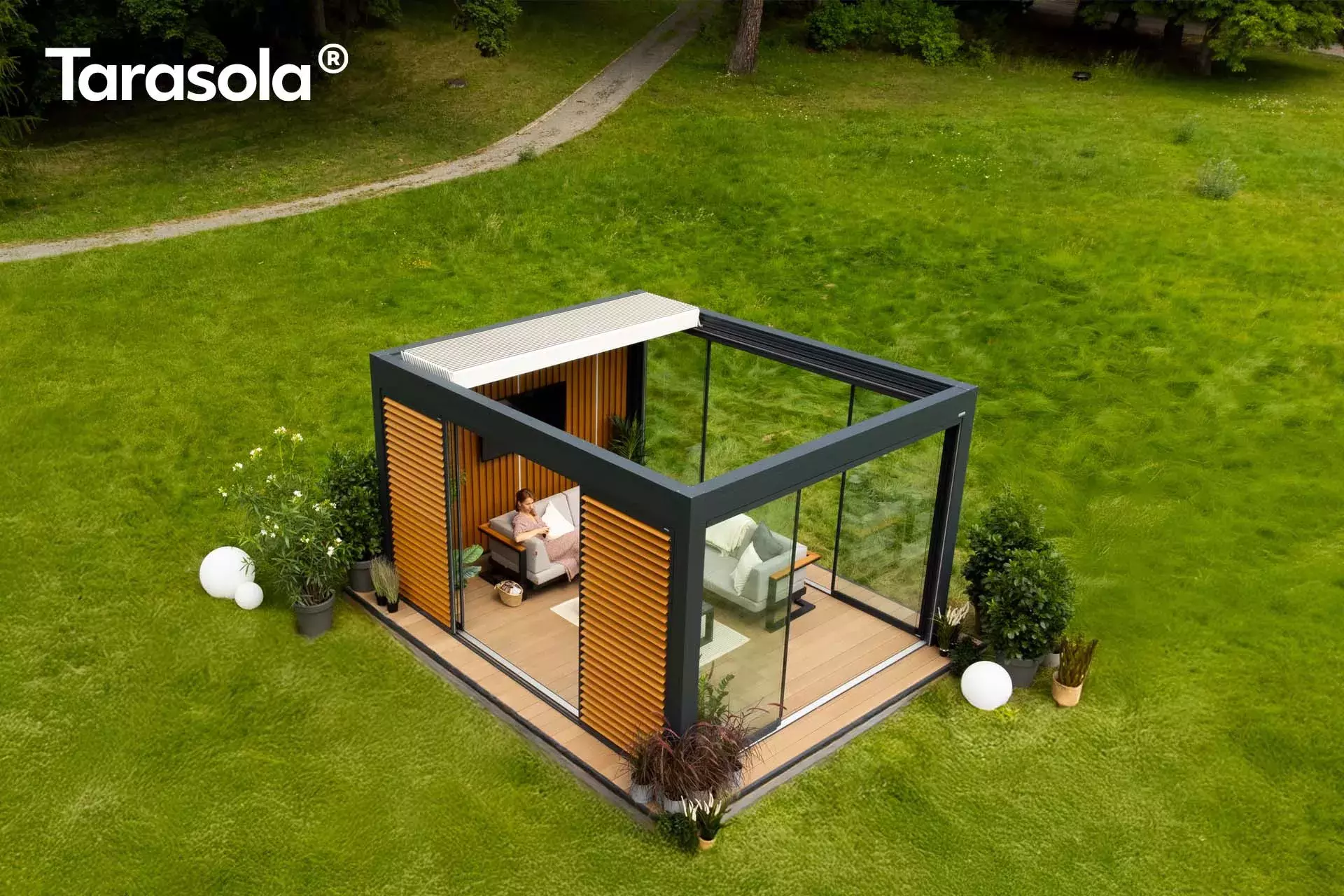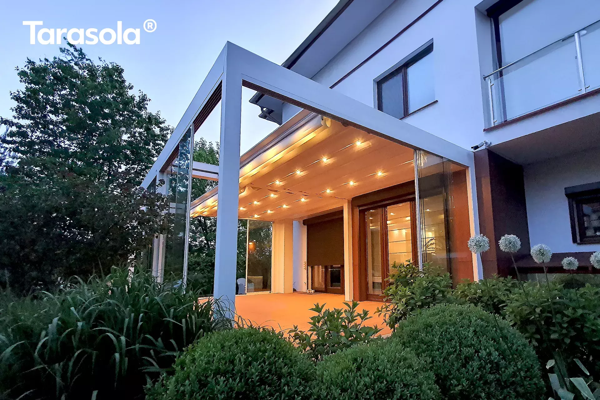 Istnieje także nowoczesna opcja pergoli lamelowej z całkowicie zsuwanym dachem, który pozwala w pełni otworzyć przestrzeń i korzystać z otwartego nieba, kiedy tylko masz na to ochotę.