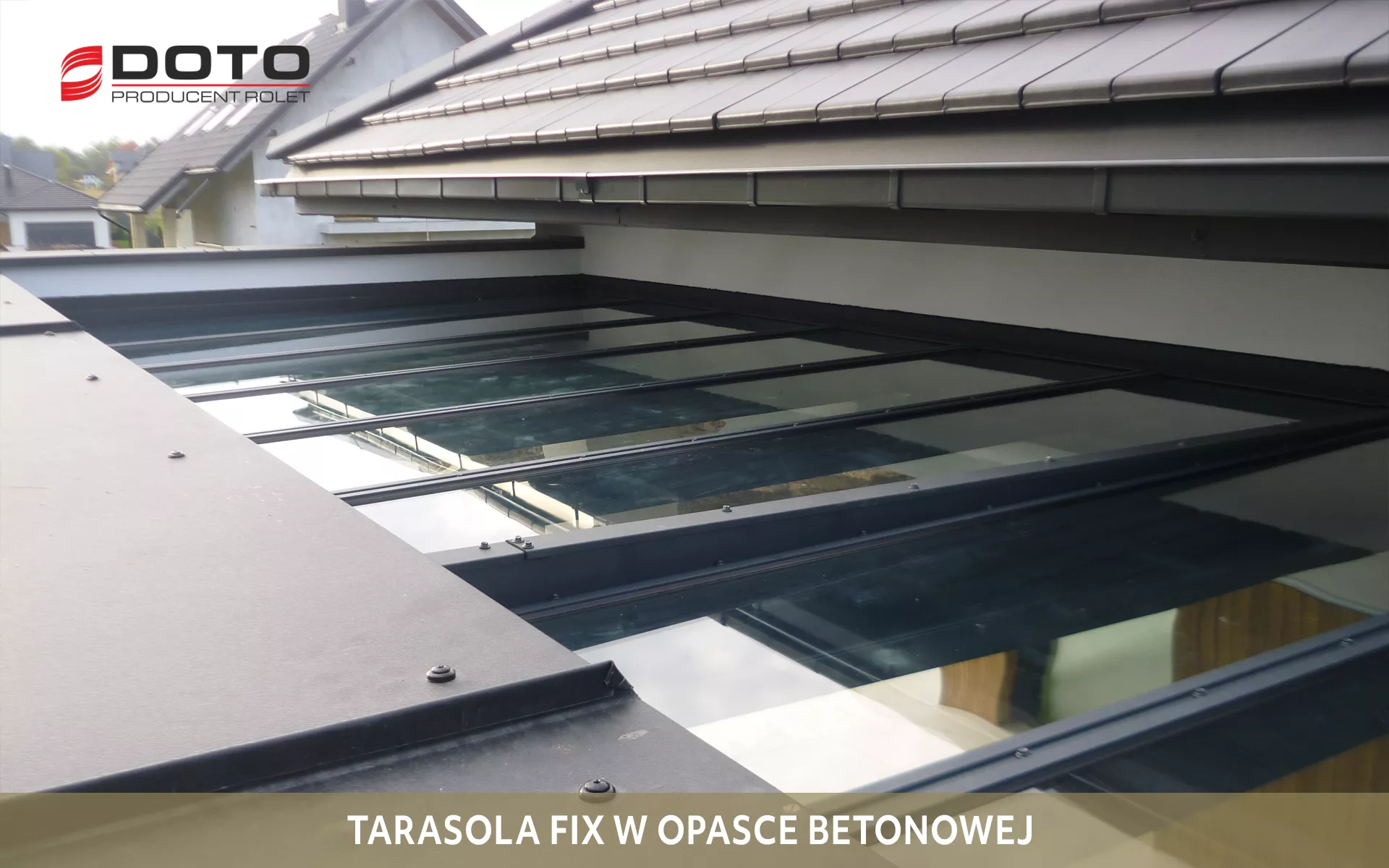 Wielu właścicieli nowoczesnych domów często pyta, jak można zadaszyć taras, gdy nad nim znajduje się betonowa opaska lub wieniec. Do tej pory najczęściej proponowaliśmy dachy składane tekstylne lub lamelowe, które znakomicie sprawdzają się w takich warunkach. Tym razem mamy dla Was rozwiązanie inne niż dotychczas – stałe, nowoczesne zadaszenie szklane o nazwie Tarasola Fix