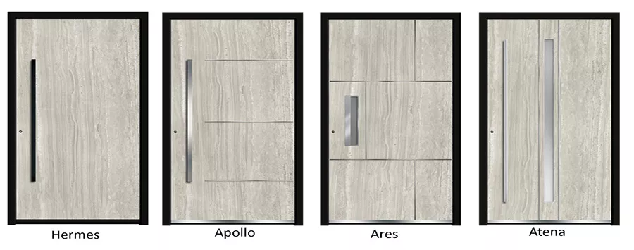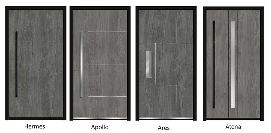 Drzwi z tej kolekcji zachwycają unikalnym doborem materiałów – od betonu artystycznego, przez ceramikę, po naturalne drewno. Ich prosta forma i subtelna stylistyka doskonale komponują się z nowoczesnymi budynkami jednorodzinnymi.