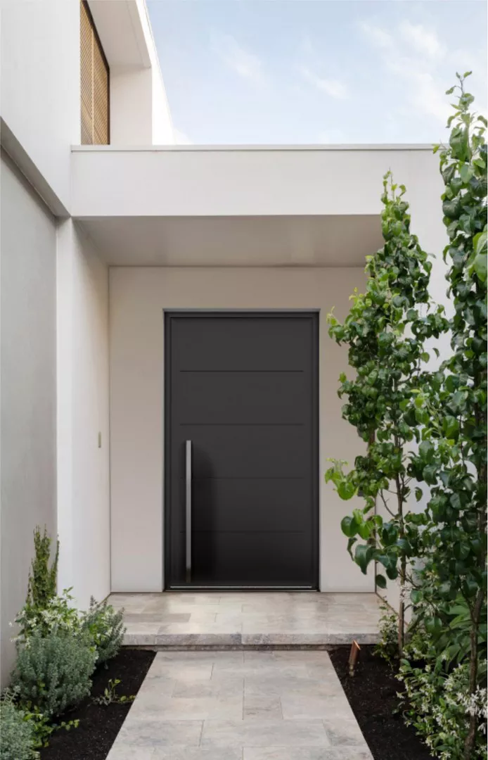 System Pivot to nowoczesne rozwiązanie, które redefiniuje pojęcie drzwi wejściowych. Umożliwia tworzenie wyjątkowo dużych konstrukcji zarówno z panelem wypełniającym, jak i w wersji przeszklonej o wysokości nawet do 4 metrów. Drzwi AWIDOOR Pivot wyróżniają się znakomitą szczelnością, izolacyjnością termiczną oraz możliwością zastosowania zabezpieczeń antywłamaniowych.