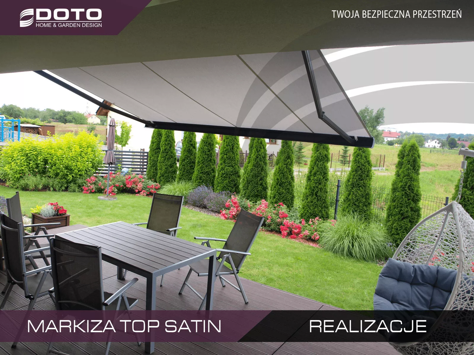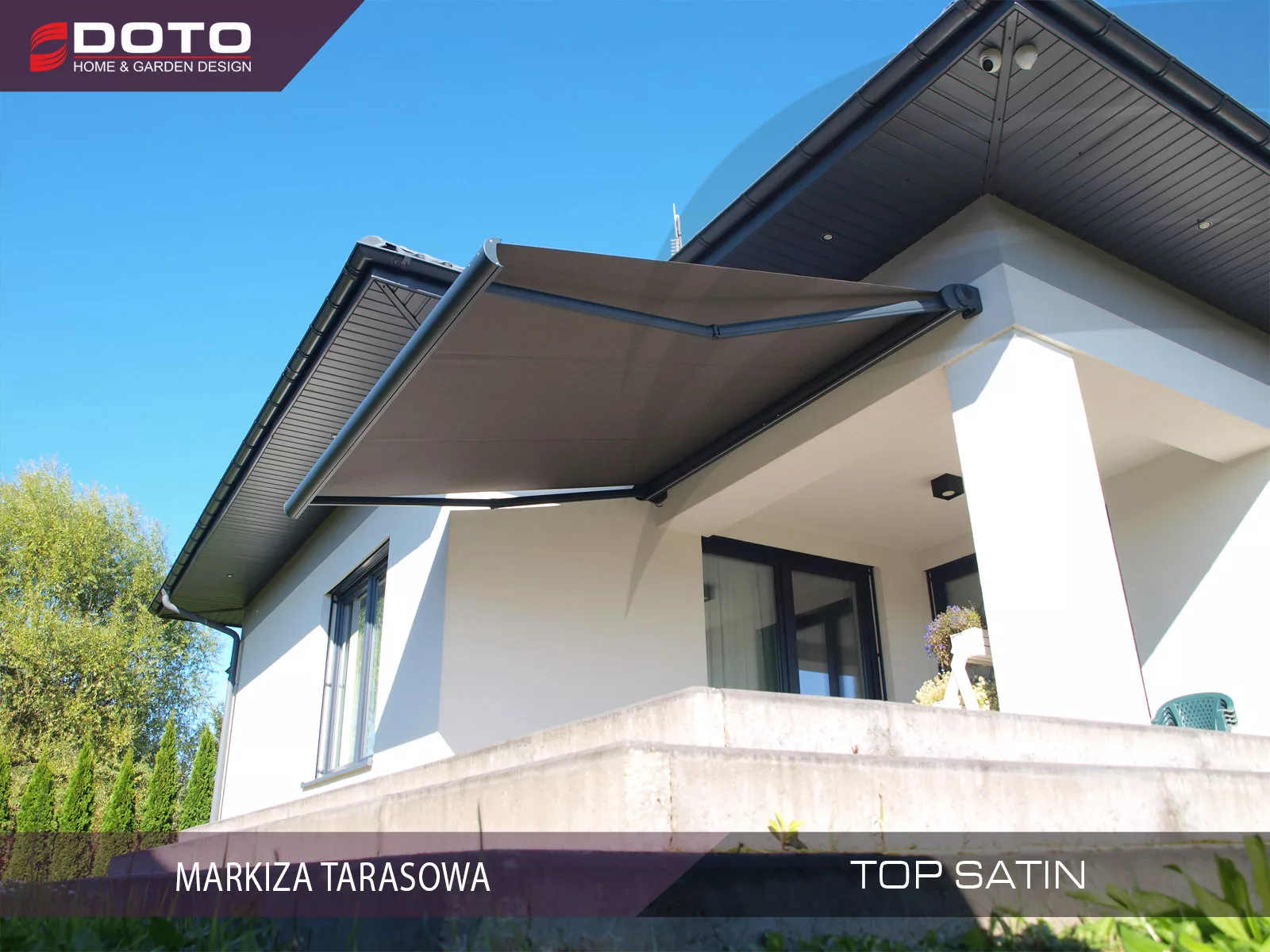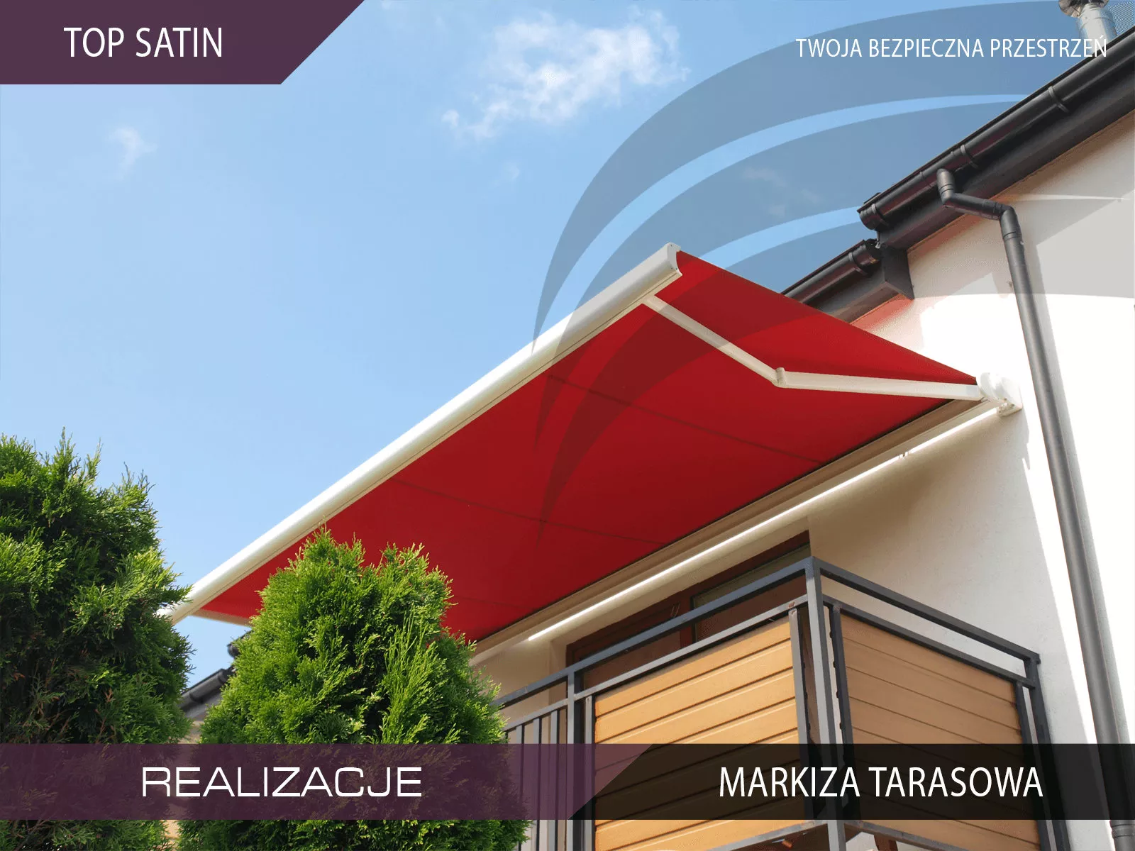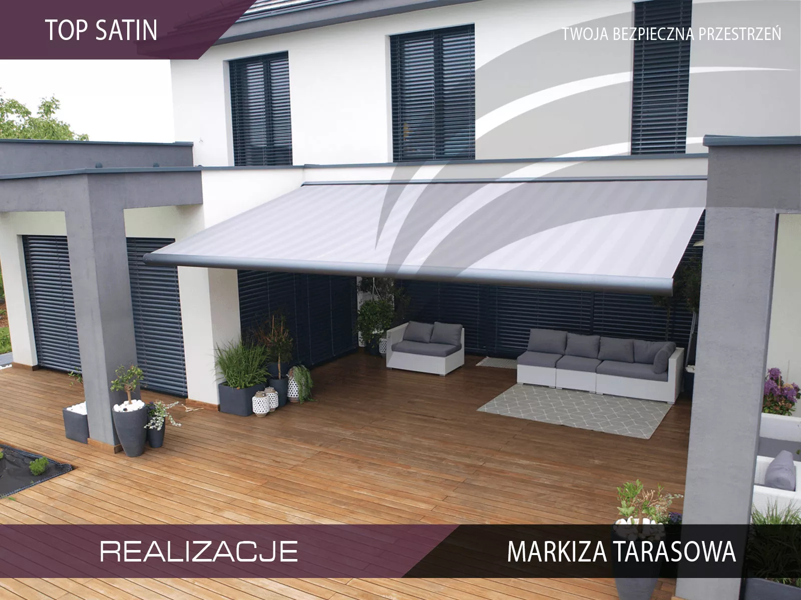 Markiza tarasowa Top Satin to nowoczesna markiza w pełnej kasecie, wyróżniająca się eleganckim wzornictwem i wysoką funkcjonalnością. Jej aluminiowa konstrukcja jest trwała, a zastosowanie kasety skutecznie chroni poszycie przed czynnikami atmosferycznymi. Top Satin zapewnia szeroki zakres regulacji kąta nachylenia oraz możliwość sterowania elektrycznego lub ręcznego. Dostępna jest w wielu wariantach kolorystycznych, z opcją automatyki pogodowej i maksymalną szerokością do 700 cm oraz wysięgiem do 350 cm. To idealny wybór dla osób ceniących komfort, jakość i nowoczesny design.