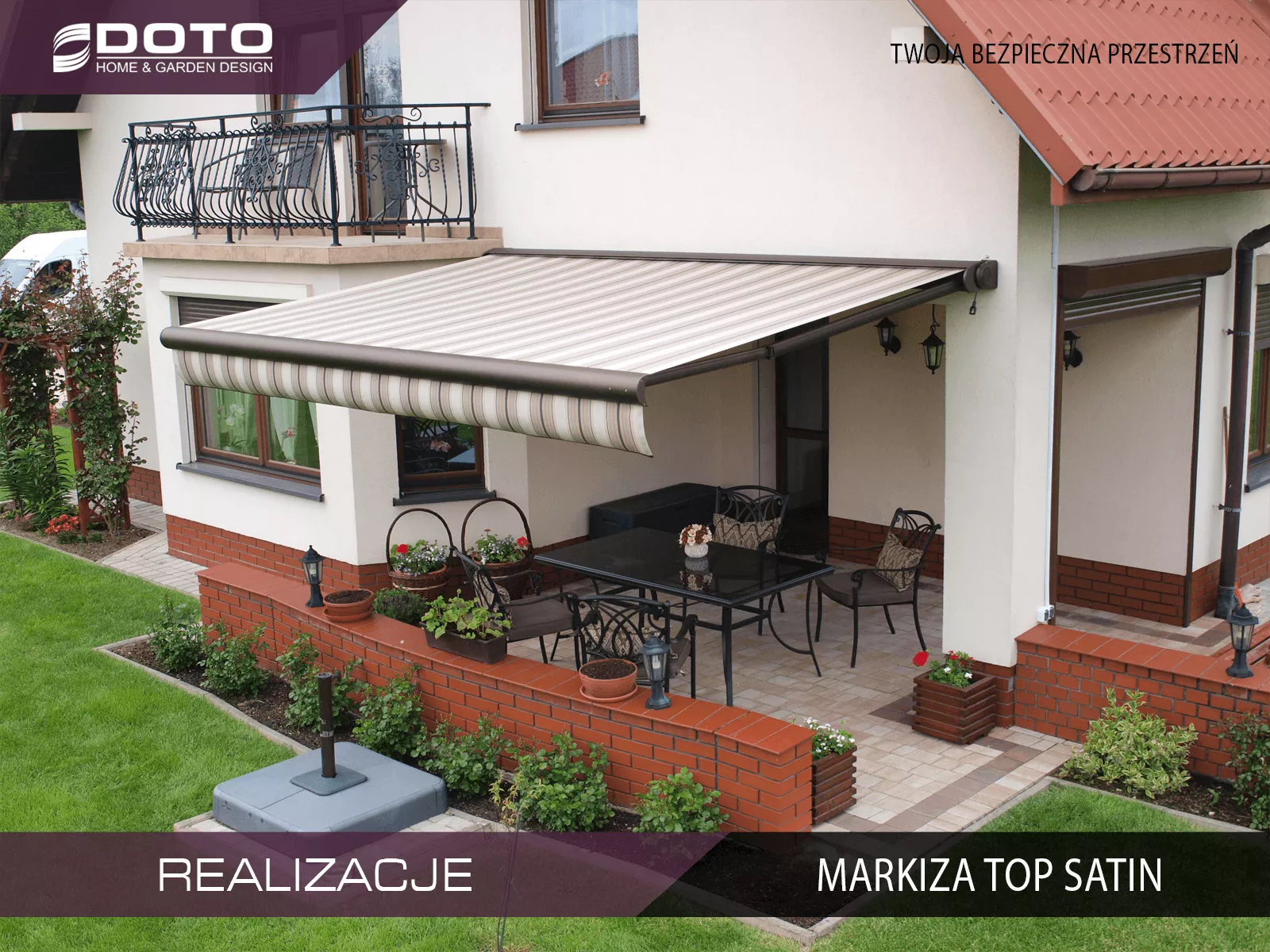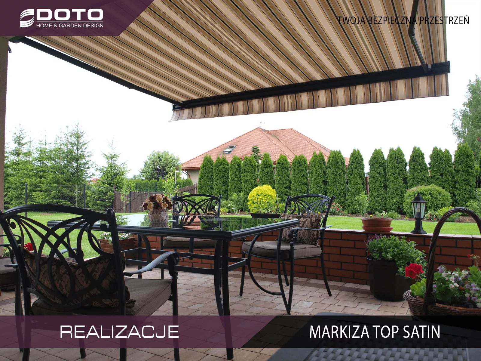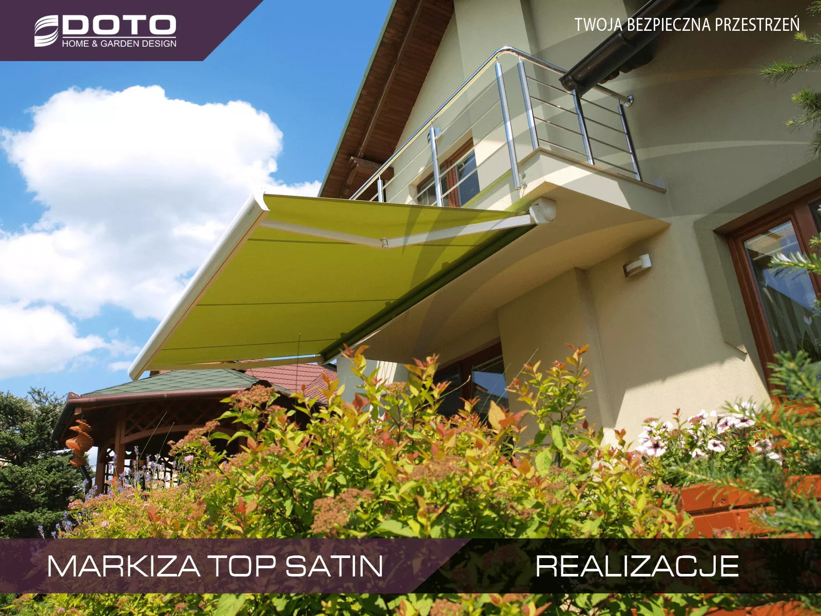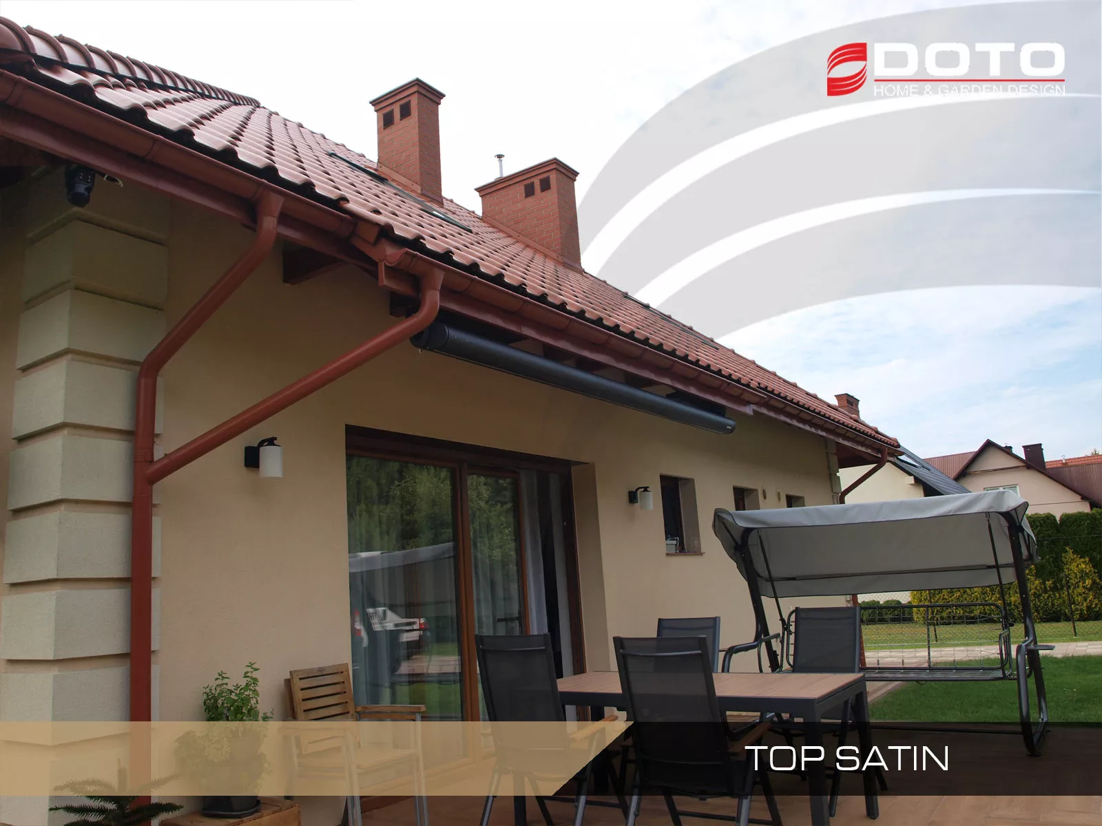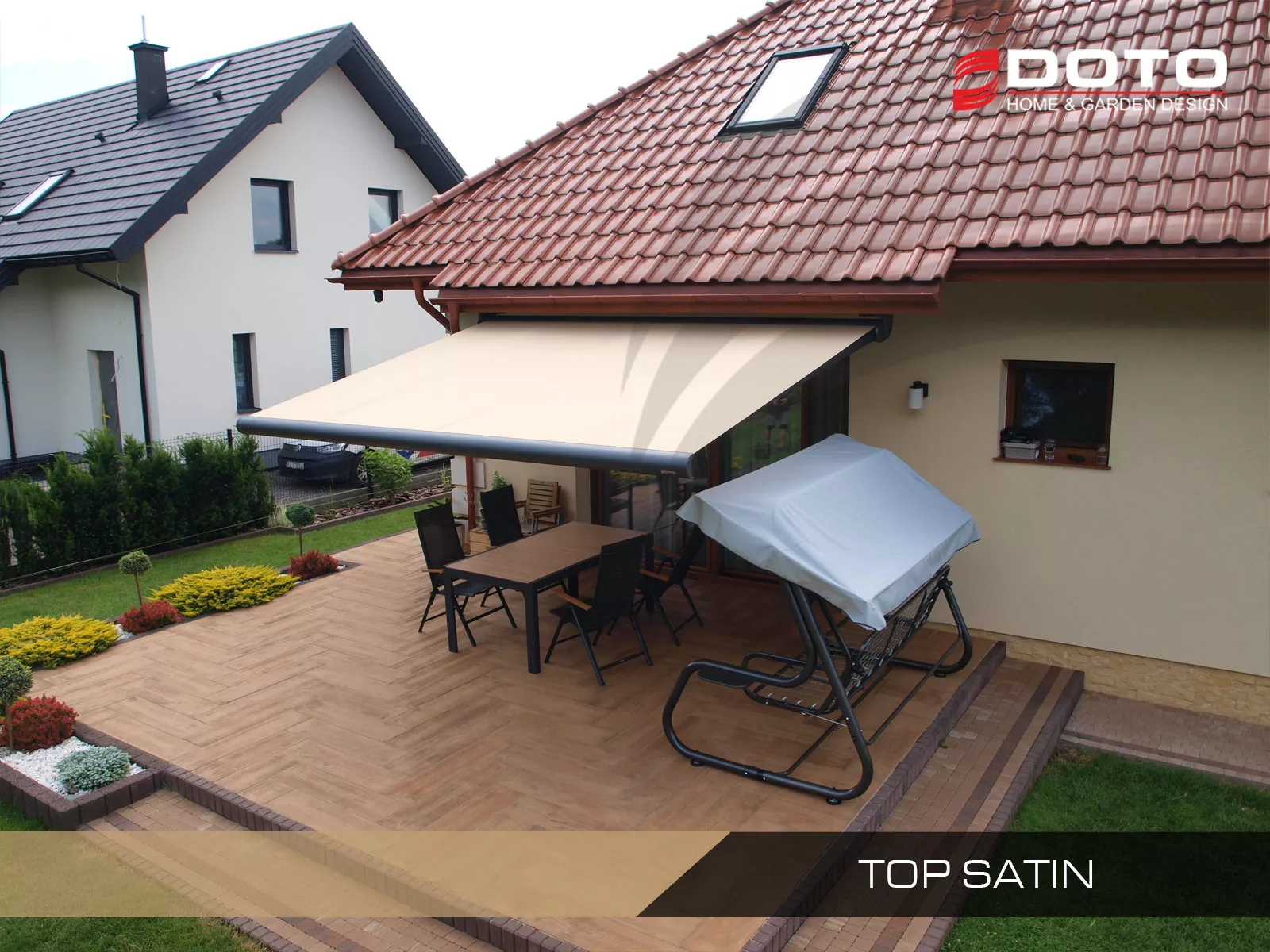 Markiza tarasowa Top Satin to nowoczesna markiza w pełnej kasecie, wyróżniająca się eleganckim wzornictwem i wysoką funkcjonalnością. Jej aluminiowa konstrukcja jest trwała, a zastosowanie kasety skutecznie chroni poszycie przed czynnikami atmosferycznymi. Top Satin zapewnia szeroki zakres regulacji kąta nachylenia oraz możliwość sterowania elektrycznego lub ręcznego. Dostępna jest w wielu wariantach kolorystycznych, z opcją automatyki pogodowej i maksymalną szerokością do 700 cm oraz wysięgiem do 350 cm. To idealny wybór dla osób ceniących komfort, jakość i nowoczesny design.