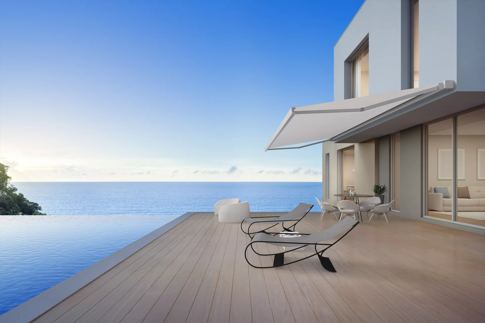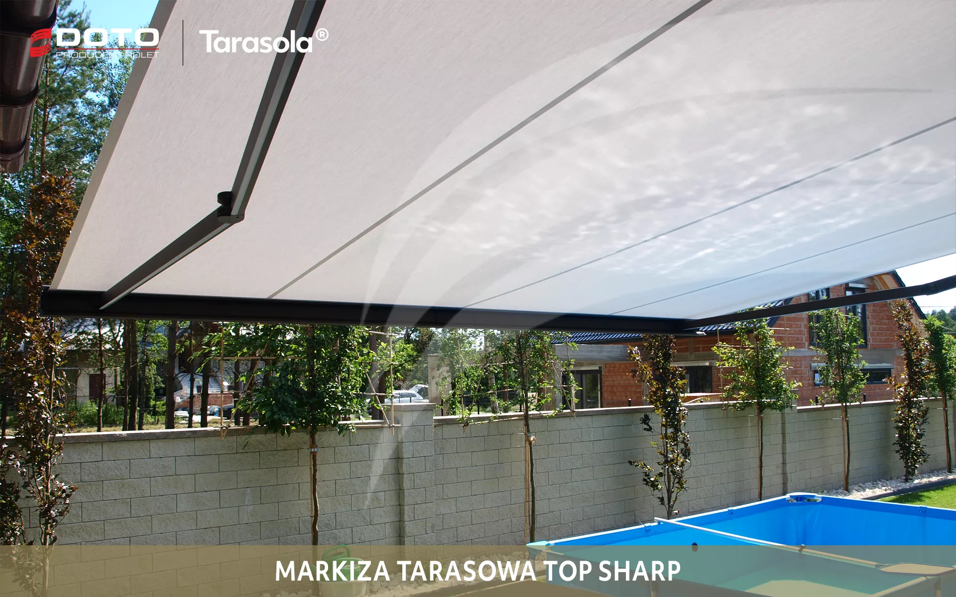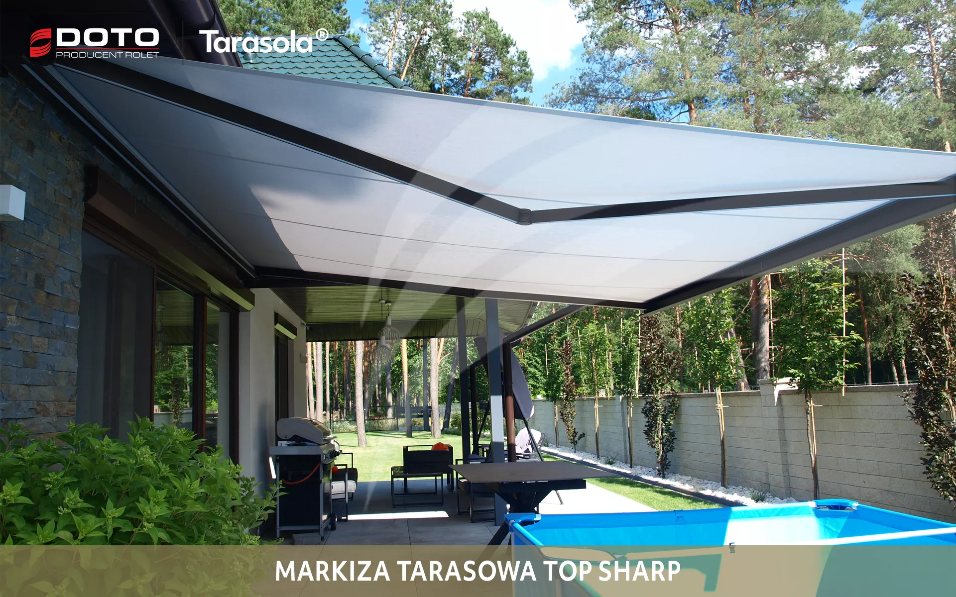 Markiza tarasowa Top Sharp wyróżnia się nowoczesnym, prostokątnym kształtem kasety, który idealnie podkreśla geometryczną linię tarasu. Solidna konstrukcja, trwałe materiały oraz estetyczny design zapewniają ochronę przed słońcem i lekkim deszczem, gwarantując komfortowy wypoczynek na zewnątrz.