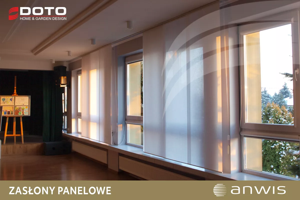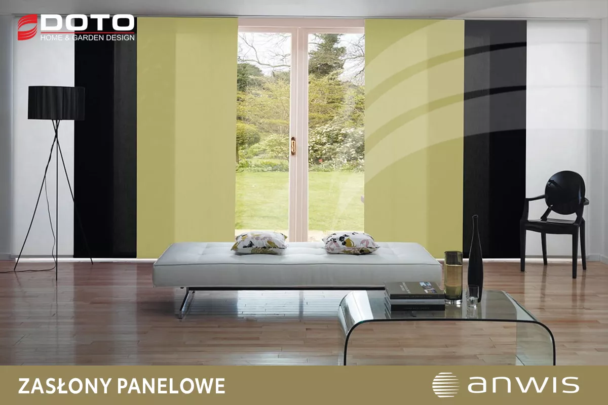 Zasłony panelowe Panel Track zwane również panelami japońskimi to nowoczesne i funkcjonalne rozwiązanie dekoracyjne, idealne do dużych przeszkleń, witryn czy drzwi tarasowych. System tkanin panelowych to nowoczesna alternatywa dla klasycznych zasłon i firan, która składa się z dużych pasów tkaniny zawieszonych na szynie. Tkaniny dostępne są w bardzo szerokiej gamie kolorystycznej zarówno jednolite kolory (np. biel, szarość, czerwień, zieleń, brąz) jak i wzory o ciekawej strukturze i właściwościach: od transparentnych po całkowicie zaciemniające.